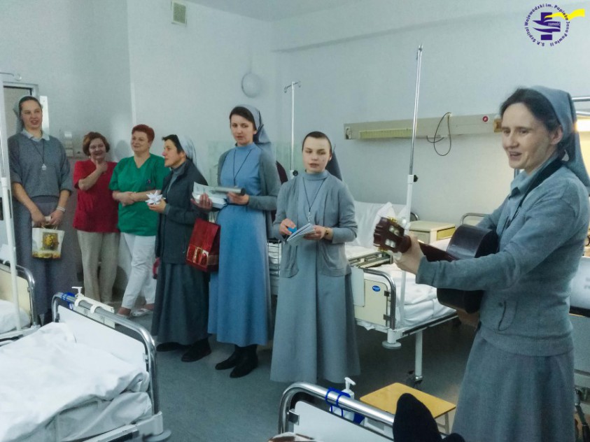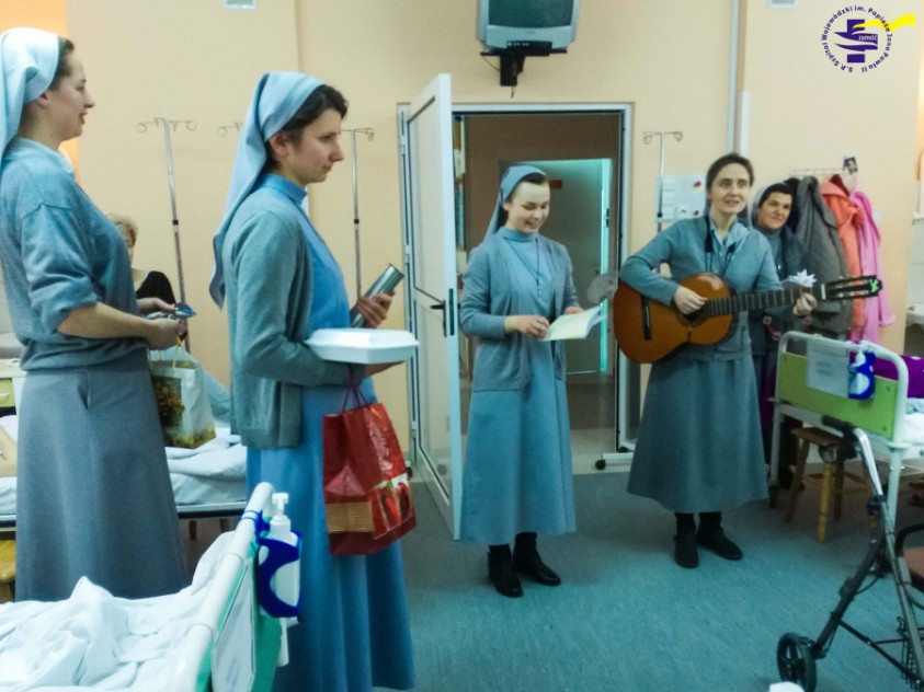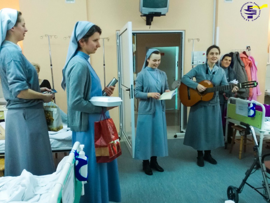 Podobnie jak przed rokiem Siostry Franciszkanki Misjonarki z Łabuń w dniu 30 grudnia 2016 r., w święto św. Rodziny, kolędowały w czasie Mszy św. o godz. 15.00, a po niej na oddziałach. Wspólnie śpiewanie kolęd z pacjentami i pracownikami wprowadziło wszystkich w atmosferę rodzinnego przeżywania świąt. Ponadto, Siostry składały życzenia, rozdawały obrazki i modliły się w intencji chorych oraz personelu.