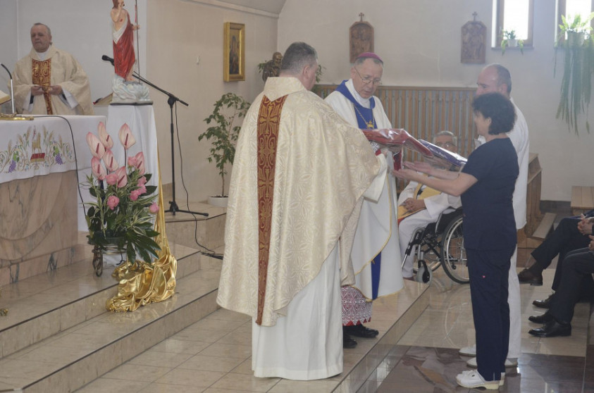Spotkanie rozpoczęło się Mszą Świętą w Kaplicy Szpitalnej pod przewodnictwem JE Ks. Bp. dr. Mariana Rojka Biskupa Diecezji Zamojsko-Lubaczowskiej. Podczas Mszy Świętej Kapelani Samodzielnego Publicznego Szpitala Wojewódzkiego im. Papieża Jana Pawła II w Zamościu przekazali na ręce dr n. med. Ewy Wierzchowskiej-Cioch Lekarza Kierującego Oddziałem Neurologii z Pododdziałem Udarowym pamiątkową rzeźbę, która przedstawia Chrystusa Frasobliwego w koronie cierniowej. Pamiątkowa rzeźba została wykonana z drewna przez artystę z okolic Biłgoraja. Rzeźba umieszczona jest w Oddziale Neurologii z Pododdziałem Udarowym w otoczeniu obrazów Roztocza, w miejscu widocznym dla pacjentów oraz osób odwiedzających pacjentów.