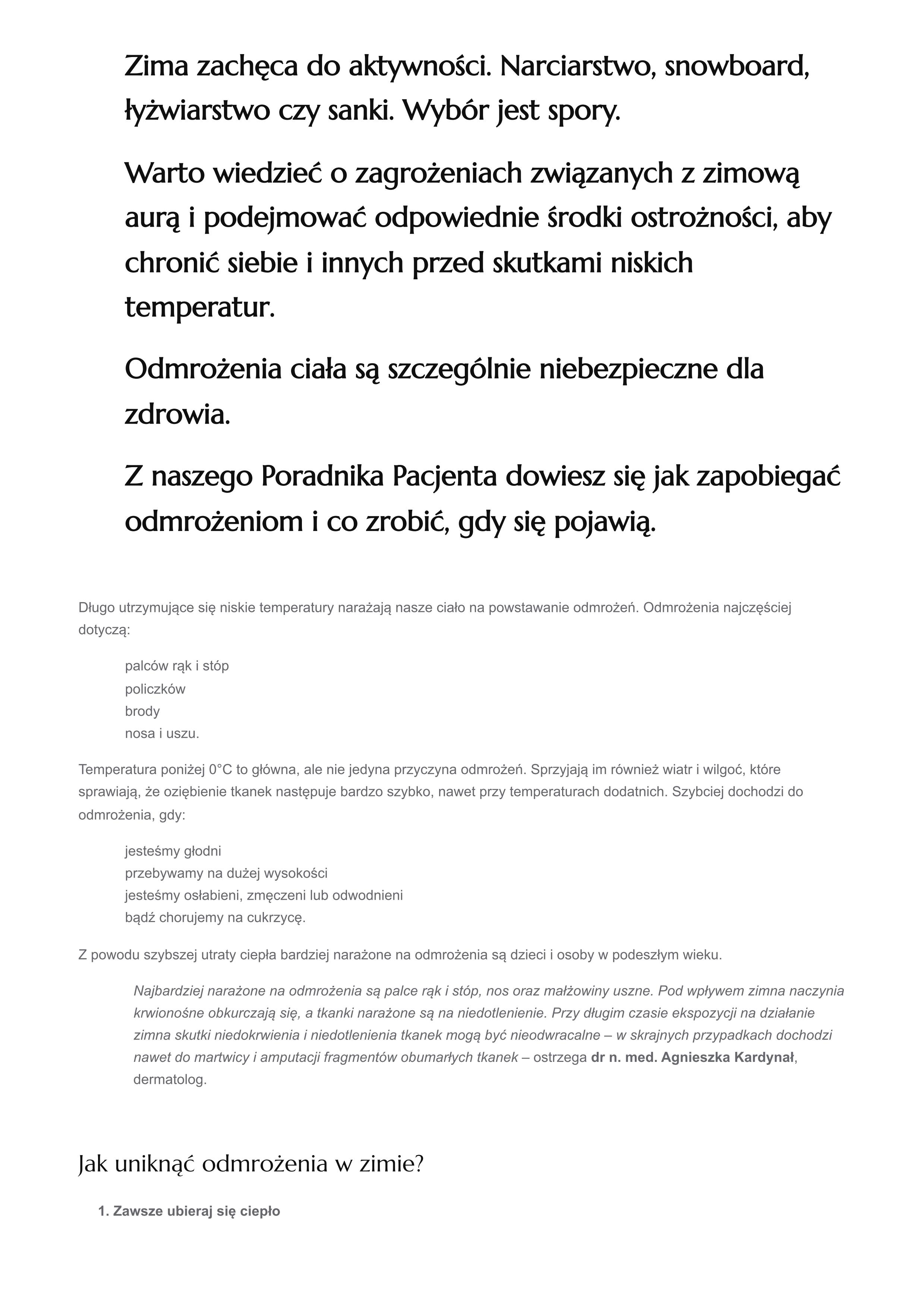 Poradnik Pacjenta: Pierwsza pomoc przy odmrożeniach