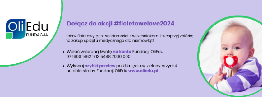 Wraz z Departamentem Zdrowia i Polityki Społecznej UMWL w Lublinie, zapraszamy w imieniu Fundacji OliEdu do udziału w akcji #fioletowelove2024, która organizowana jest z okazji Światowego Dnia Wcześniaka, przypadającego w dniu 17.