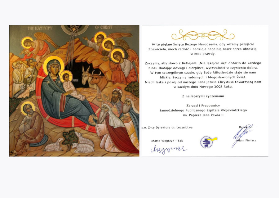 Z okazji nadchodzących Świąt Bożego Narodzenia życzymy, aby ten wyjątkowy czas napełnił Państwa serca spokojem, radością i bliskością najbliższych. Niech każda chwila świąteczna przynosi uśmiech i wytchnienie od codziennych trosk.