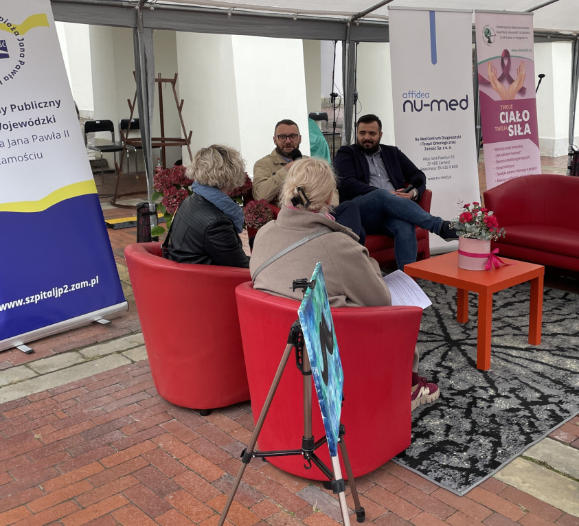W rozmowach poruszano m.in. temat rozwoju akcji „A zbadaj to!” – od profilaktyki raka piersi w pierwszej edycji, przez nowotwory męskie, aż po tegoroczne rozszerzenie zakresu działań o nowotwory krwi, choroby kobiece i zdrowie psychiczne. Dyrektor Adam Fimiarz podkreślił, że realizowane w szpitalu inwestycje, w tym te finansowane z Krajowego Planu Odbudowy (KPO), zwiększają dostępność do diagnostyki i terapii onkologicznej w regionie, dzięki czemu pacjenci coraz rzadziej muszą szukać pomocy poza Zamościem.